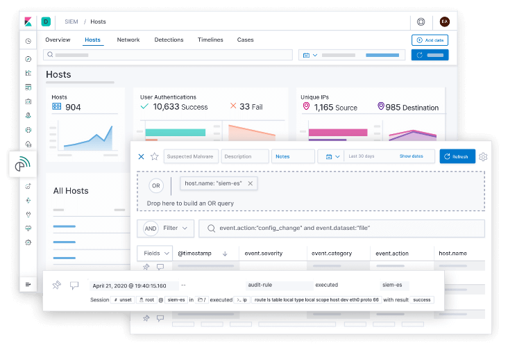 Easily onboard diverse data to eliminate blind spots. Detect threats with prebuilt anomaly detection jobs and detection rules. Respond faster with a powerful investigation UI and embedded case management.