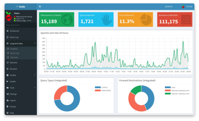 In addition to blocking advertisements, our solution has an informative Web interface that shows stats on all the domains being queried on your network.